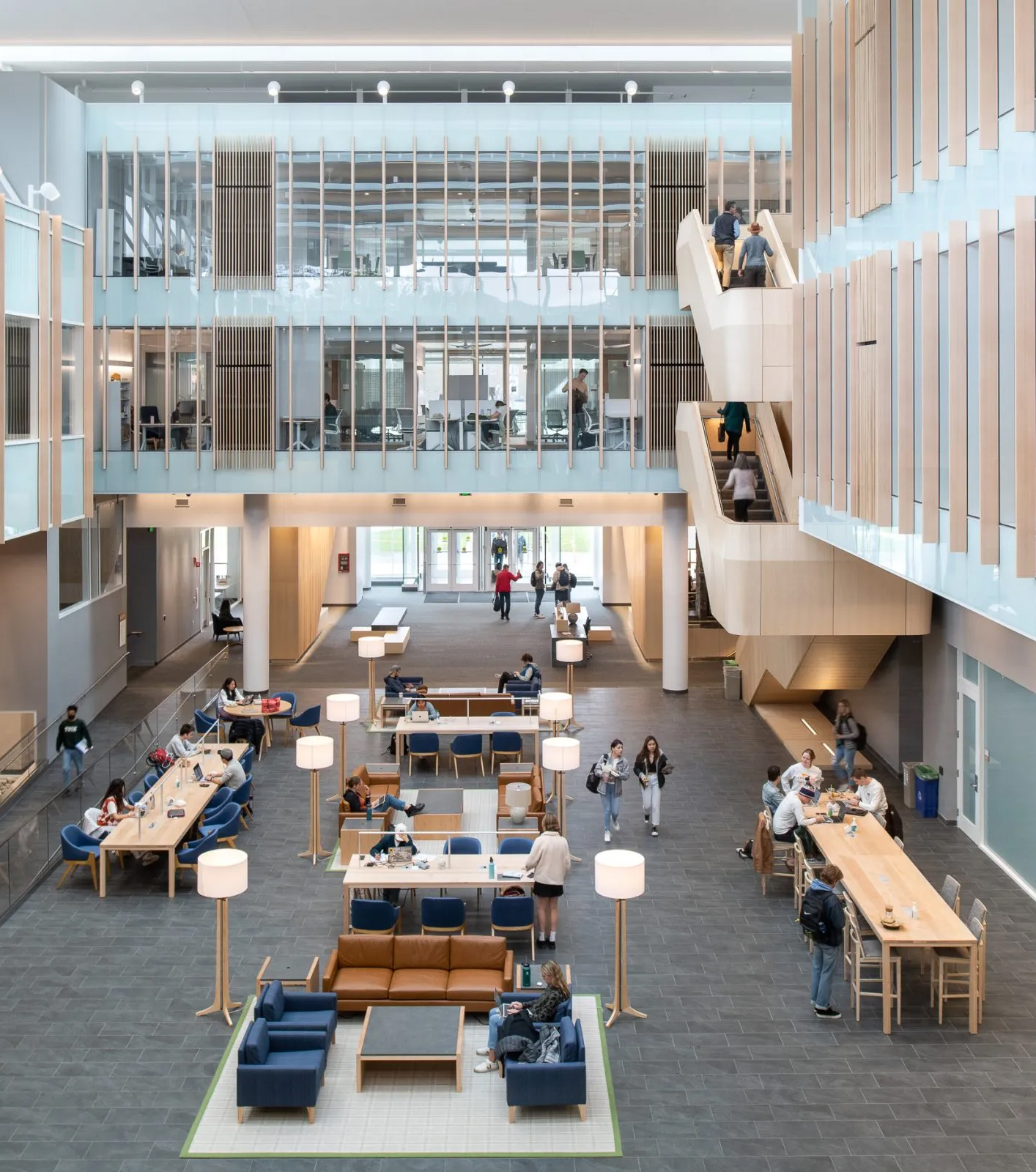 - Long-span girders creating a light-filled atrium featuring skylights